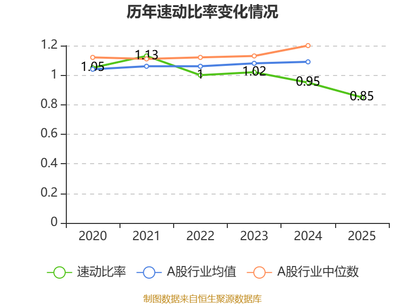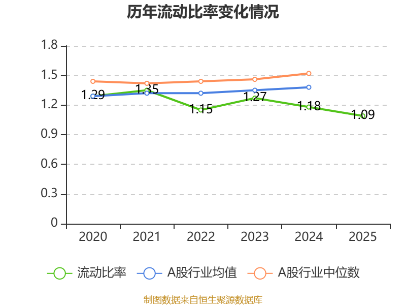 2025年,公司流动比率为1.09,速动比率为0.85。