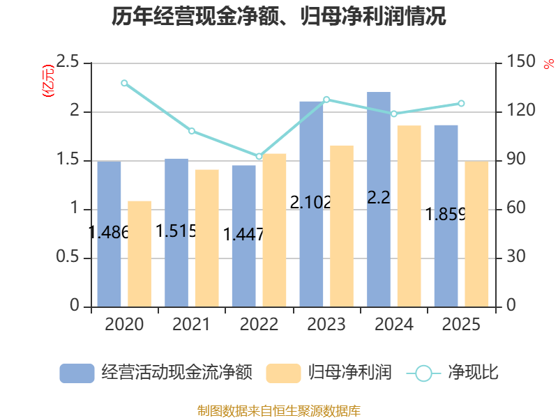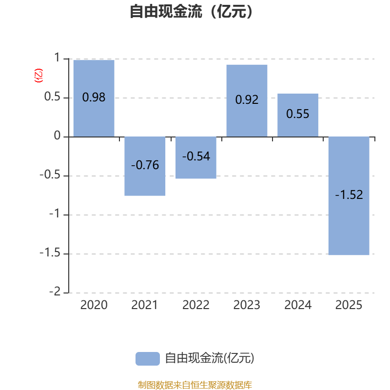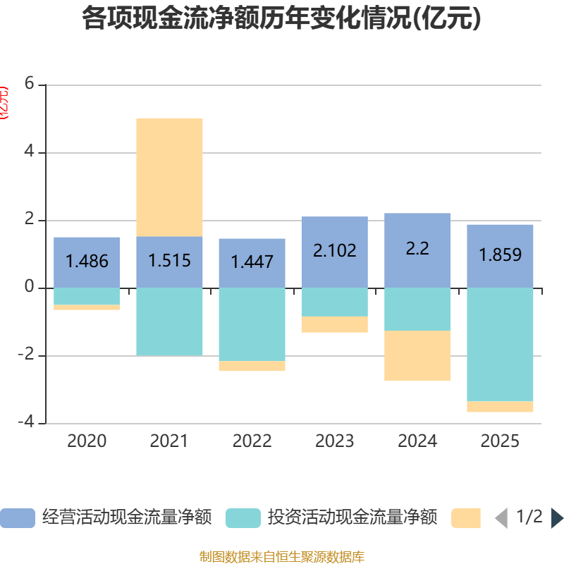 截至2025年,公司经营活动现金流净额为1.86亿元,同比下降15.5%;筹资活动现金流净额-3135.75万元,同比增加1.16亿元;投资活动现金流净额-3.36亿元,上年同期为-1.27亿元。