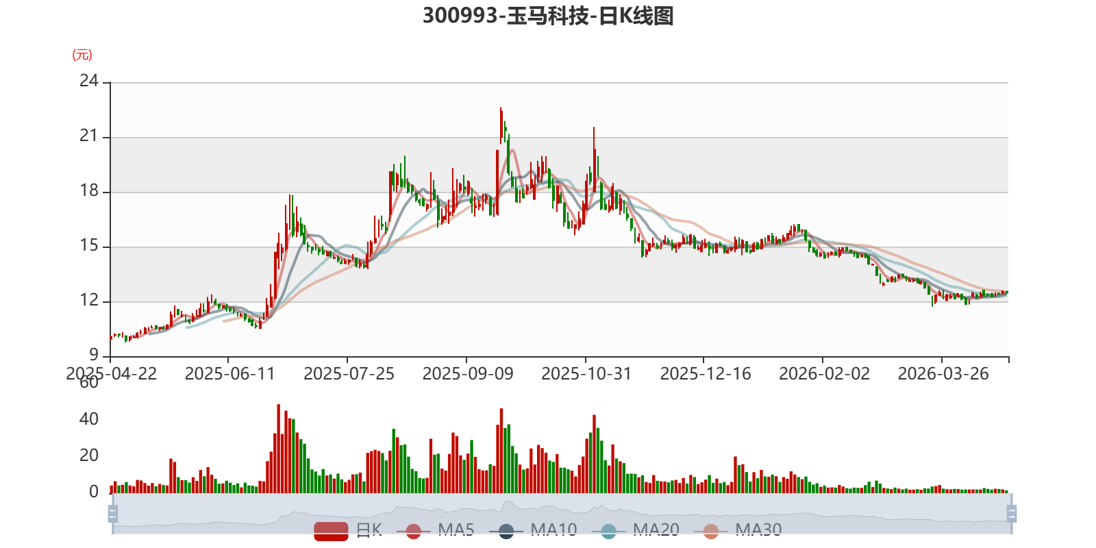 以4月21日收盘价计算,玉马科技目前市盈率(TTM)约为25.85倍,市净率(LF)约2.45倍,市销率(TTM)约5.16倍。