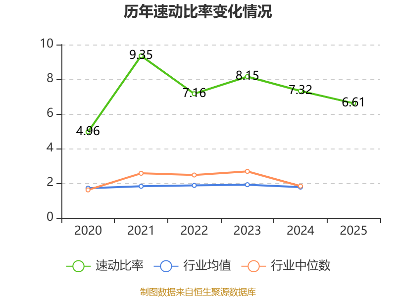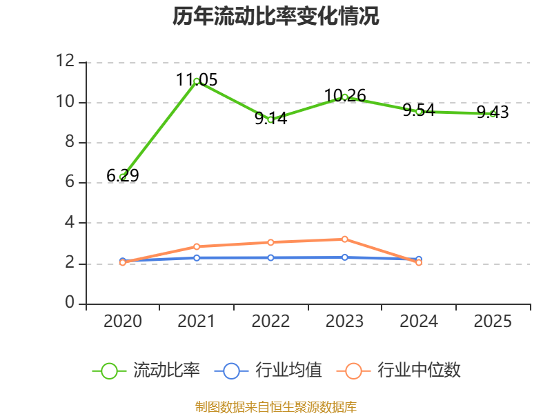 2025年,公司流动比率为9.43,速动比率为6.61。