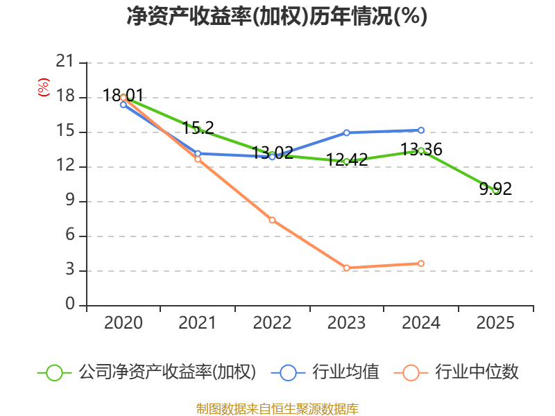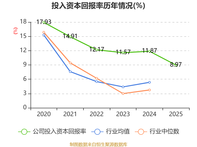 数据显示,2025年公司加权平均净资产收益率为9.92%,较上年同期下降3.44个百分点。公司2025年投入资本回报率为8.97%,较上年同期下降2.9个百分点。