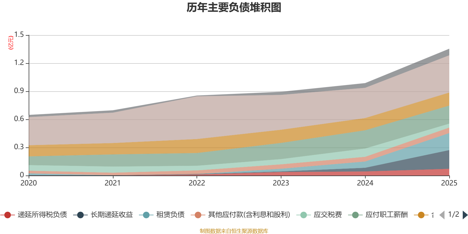 负债重大变化方面,截至2025年末,公司长期递延收益较上年末增加418.43%,占公司总资产比重上升0.92个百分点;租赁负债较上年末增加171.24%,占公司总资产比重上升0.63个百分点;应交税费较上年末减少52.1%,占公司总资产比重下降0.33个百分点;应付票据及应付账款较上年末增加22.8%,占公司总资产比重上升0.23个百分点。