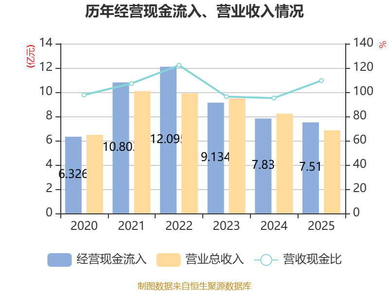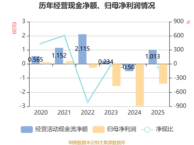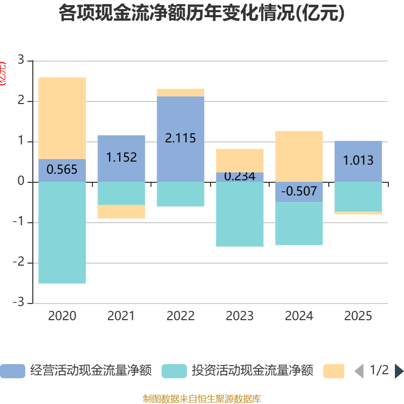 截至2025年,公司经营活动现金流净额为1.01亿元,同比增加1.52亿元;筹资活动现金流净额-650.57万元,同比减少1.32亿元;投资活动现金流净额-7407.86万元,上年同期为-1.06亿元。