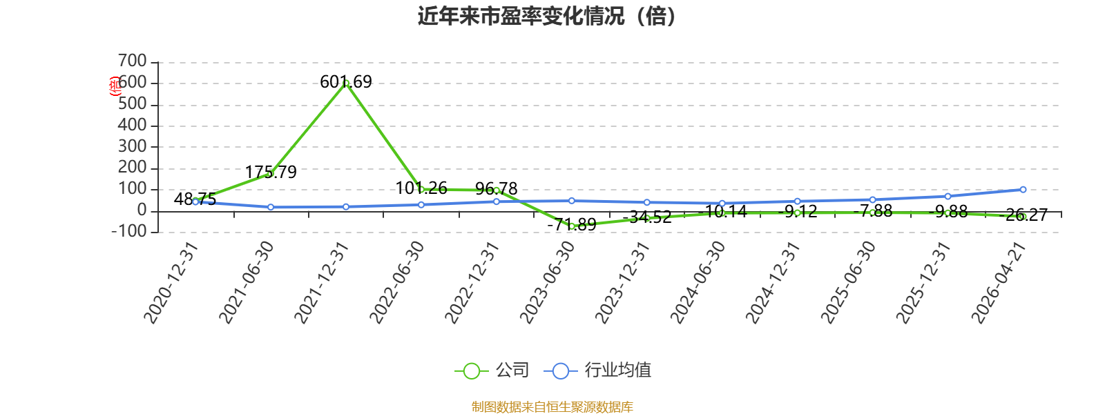 以4月21日收盘价计算,永和智控目前市盈率(TTM)约为-26.27倍,市净率(LF)约9.67倍,市销率(TTM)约5.35倍。