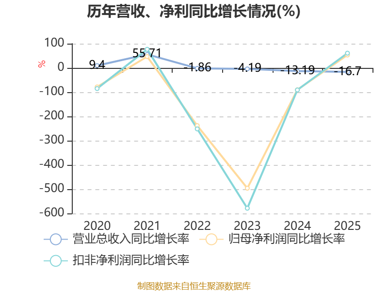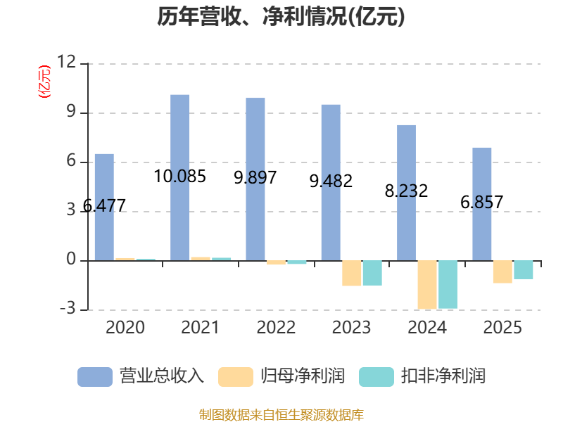 中证智能财讯永和智控(002795)4月22日披露2025年年度报告。2025年,公司实现营业总收入6.86亿元,同比下降16.70%;归母净利润亏损1.4亿元,上年同期亏损2.97亿元;扣非净利润亏损1.16亿元,上年同期亏损2.94亿元;经营活动产生的现金流量净额为1.01亿元,上年同期为-5072.8万元;报告期内,永和智控基本每股收益为-0.32元,加权平均净资产收益率为-31.10%。