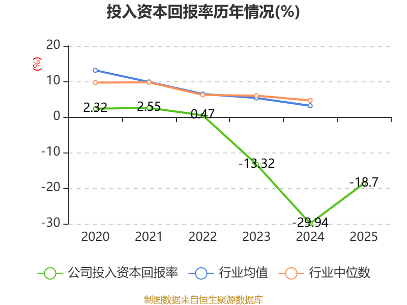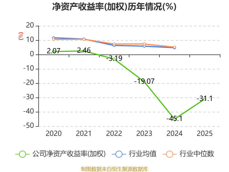 数据显示,2025年公司加权平均净资产收益率为-31.1%,较上年同期上升14个百分点。公司2025年投入资本回报率为-18.7%,较上年同期上升11.24个百分点。