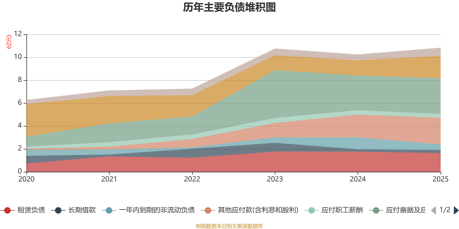 负债重大变化方面,截至2025年末,公司短期借款较上年末增加48.66%,占公司总资产比重上升5.25个百分点;其他应付款(含利息和股利)较上年末增加16.86%,占公司总资产比重上升3.42个百分点;一年内到期的非流动负债较上年末减少52.3%,占公司总资产比重下降3.33个百分点;应付票据及应付账款较上年末增加2.45%,占公司总资产比重上升2.11个百分点。