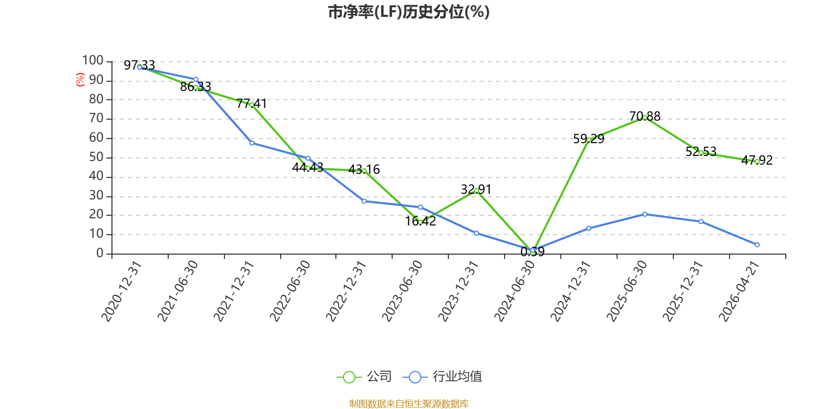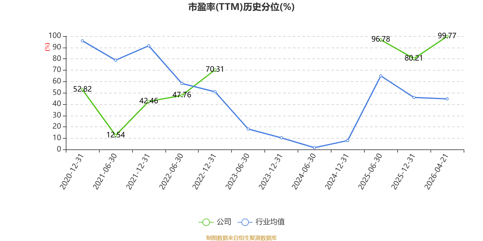 市盈率、市净率为负时,不显示当期分位数,会导致折线图中断。