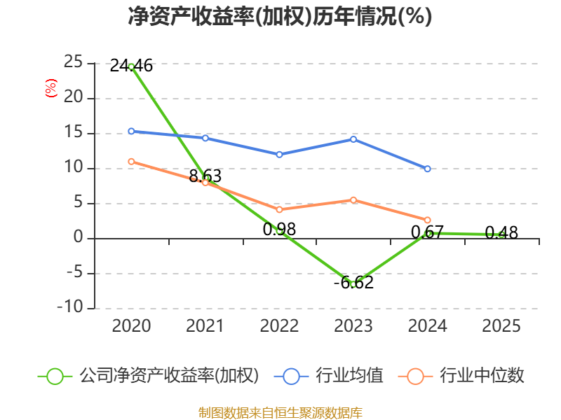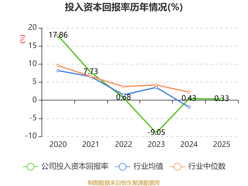 数据显示,2025年公司加权平均净资产收益率为0.48%,较上年同期下降0.19个百分点。公司2025年投入资本回报率为0.33%,较上年同期下降0.1个百分点。