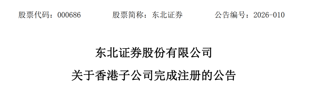 此前,公司于2月10日收到中国证监会 《关于东北证券股份有限公司在香港特别行政区设立东证国际金融控股有限公司的复函》,对公司以自有资金出资5亿港元在香港特别行政区设立东证国际事项无异议。