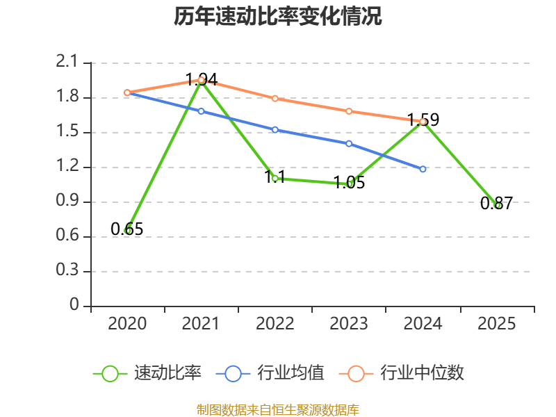 2025年,公司流动比率为1.43,速动比率为0.87。