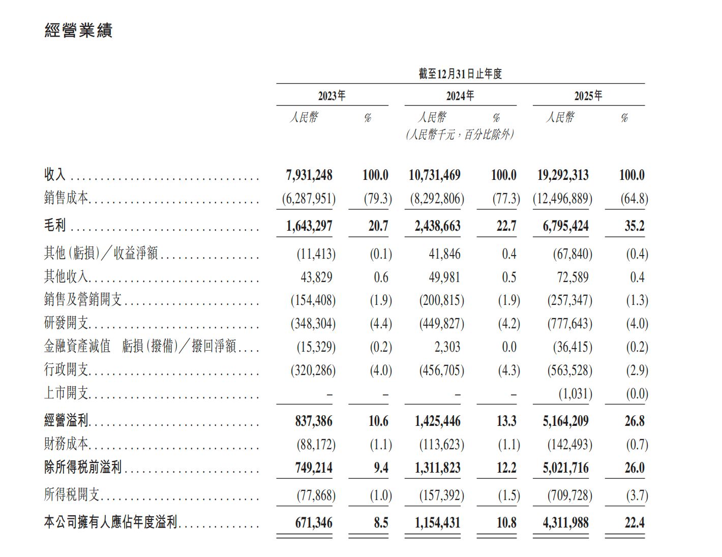 招股书显示,报告期内,胜宏科技收入、净利及毛利率均稳步增长。对比2023年与2025年的数据,公司收入从79.31亿元升至192.92亿元,净利润从6.71亿元大幅增加至43.12亿元,毛利率则从20.7%提升至35.2%。