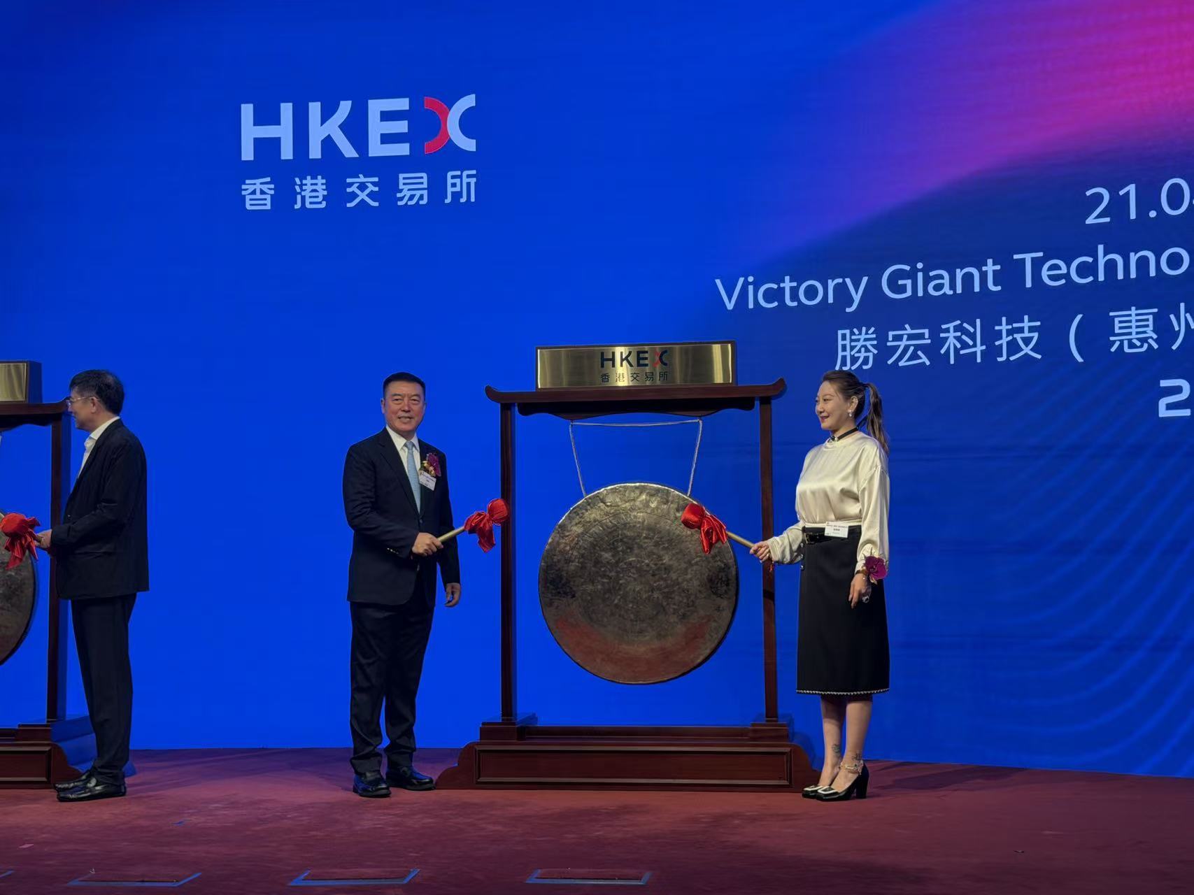 《每日经济新闻》记者在上市仪式现场看到,今日港股开市的一刻,胜宏科技创始人陈涛和其妻子刘春兰一起敲响了港交所的铜锣。通常,公司高管只需敲一下铜锣即可。但记者注意到,陈涛连续敲了8下铜锣,开心溢于言表,刘春兰还提醒他道:“够啦。”