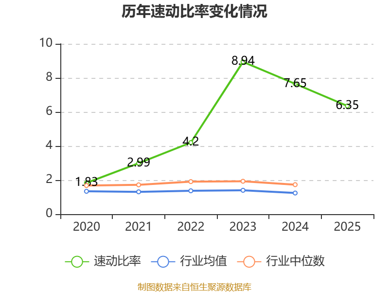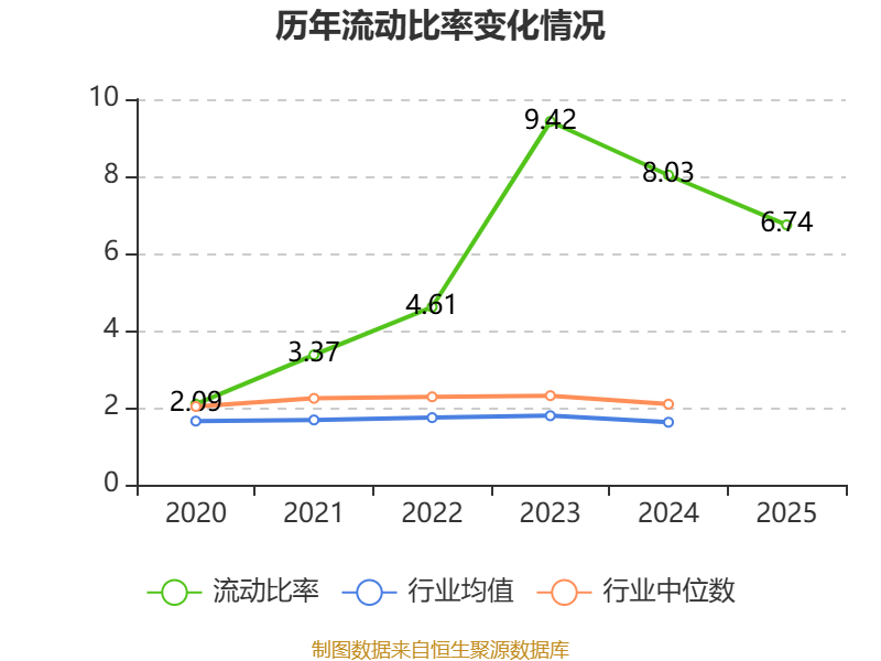 2025年,公司流动比率为6.74,速动比率为6.35。