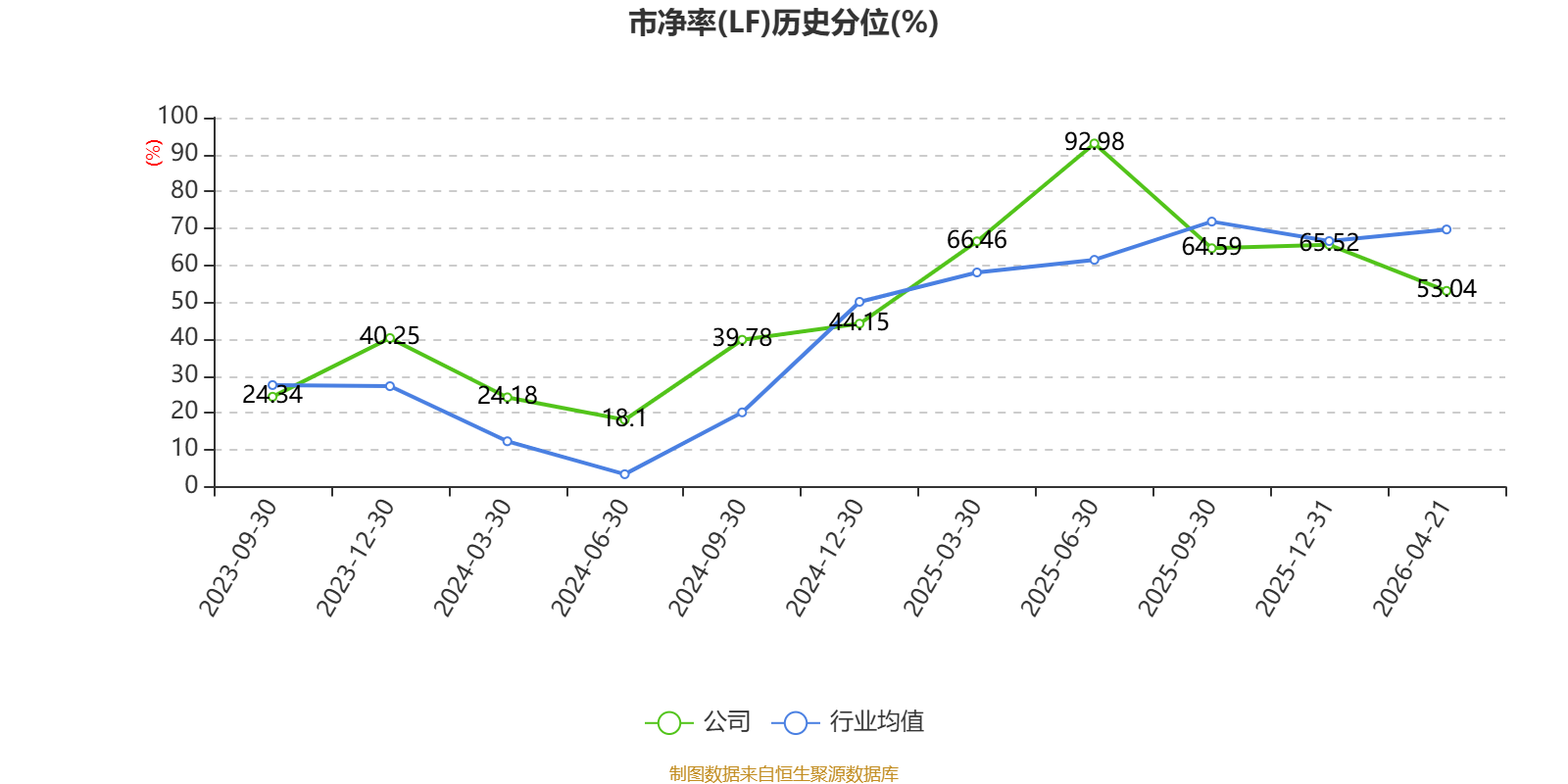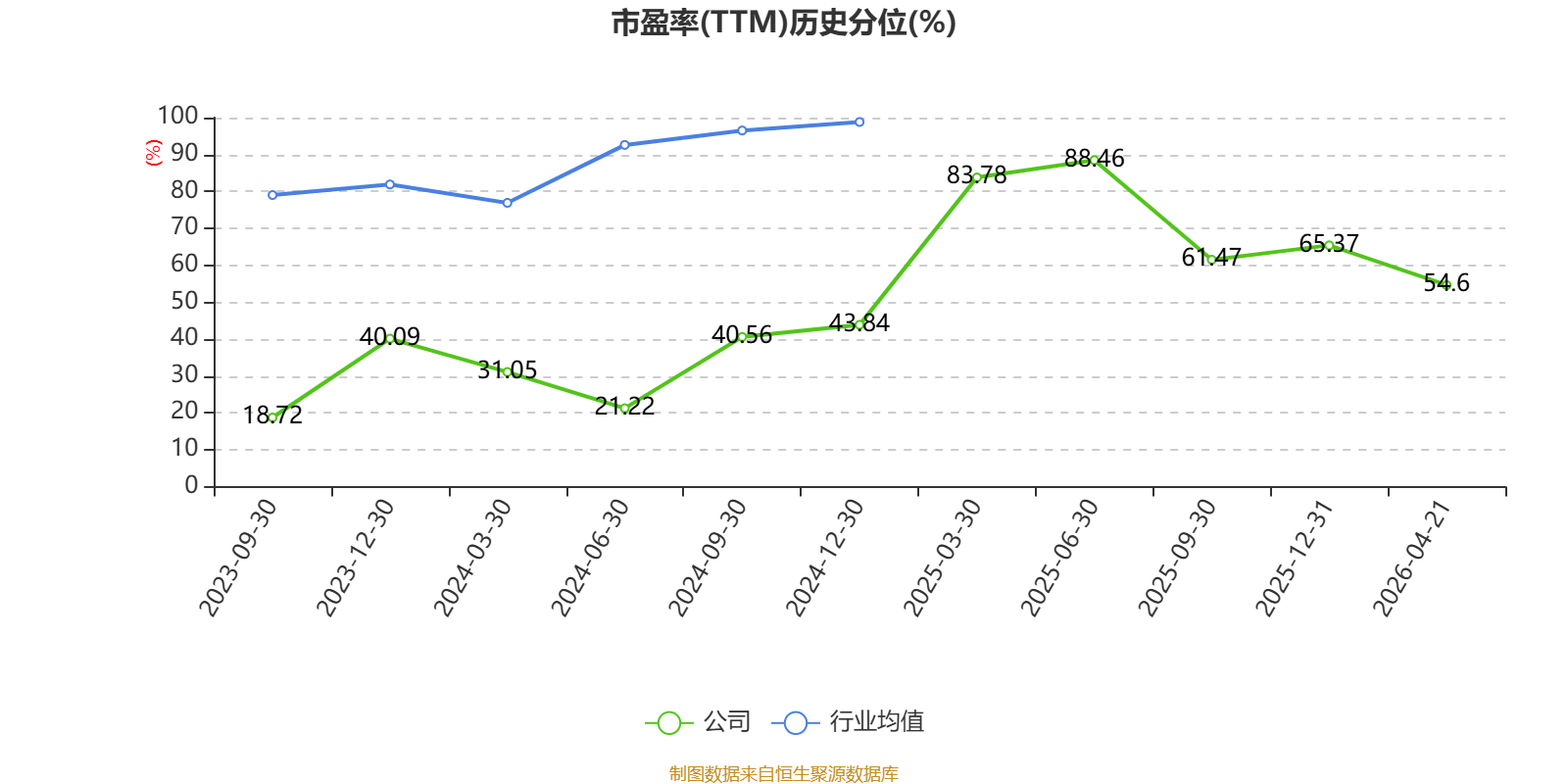 市盈率、市净率为负时,不显示当期分位数,会导致折线图中断。
