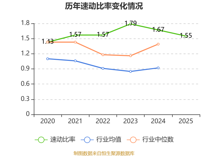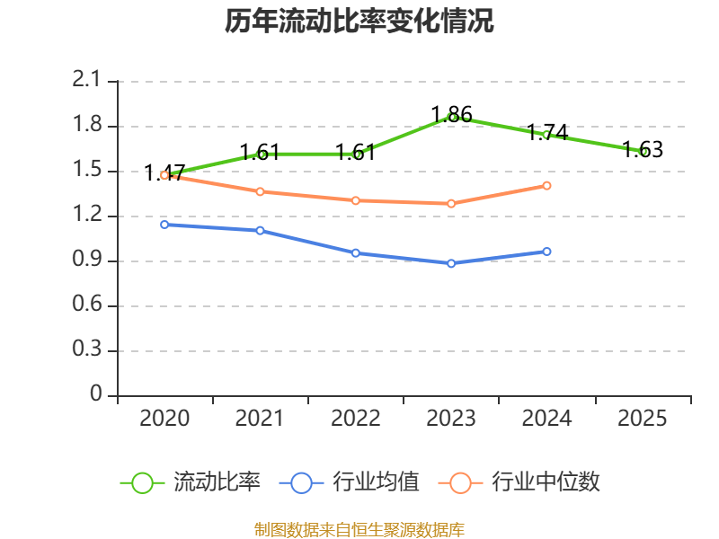2025年,公司流动比率为1.63,速动比率为1.55。