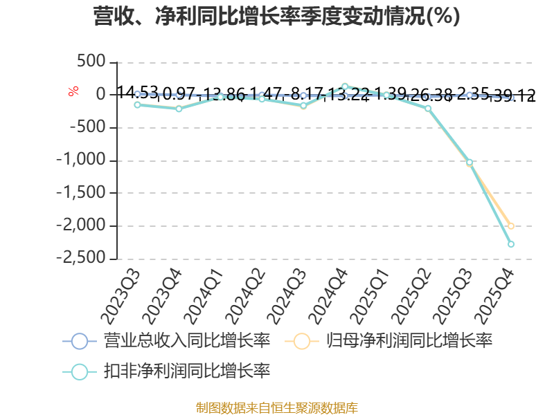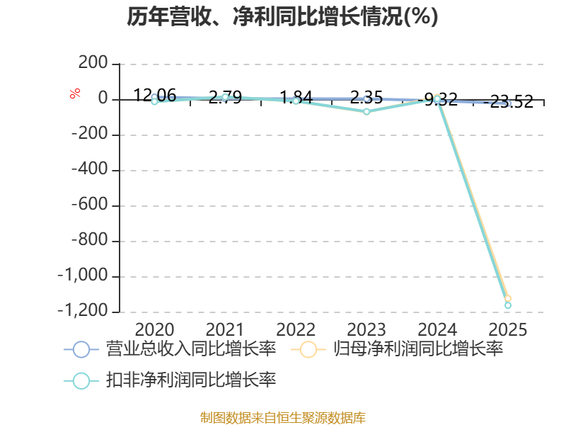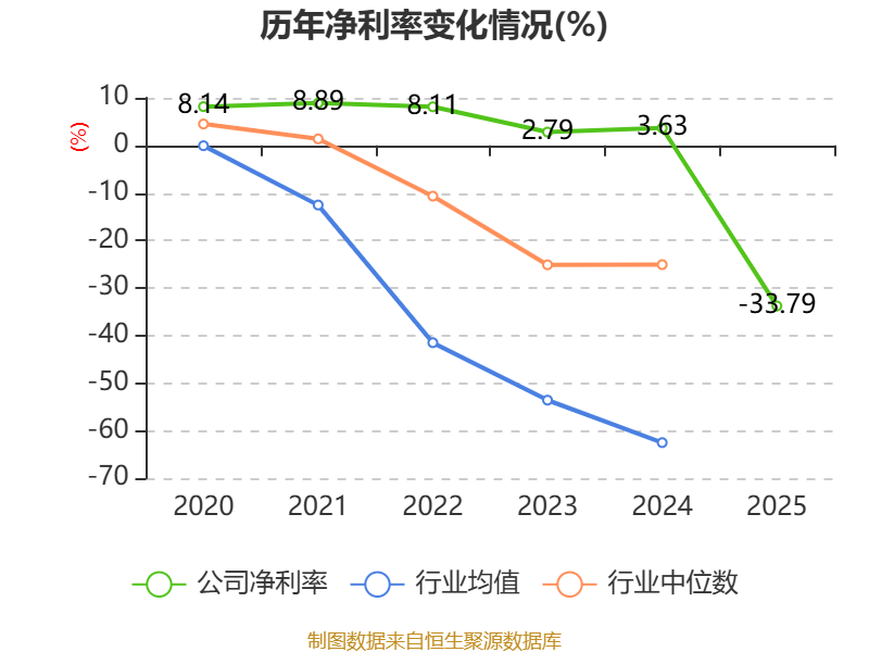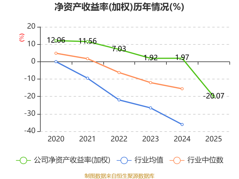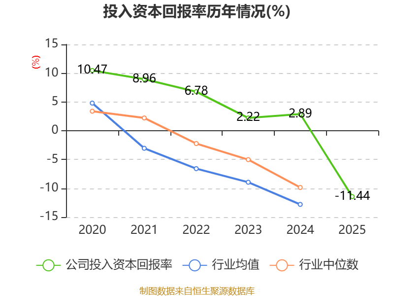 数据显示,2025年公司加权平均净资产收益率为-20.07%,较上年同期下降22.04个百分点。公司2025年投入资本回报率为-11.44%,较上年同期下降14.33个百分点。