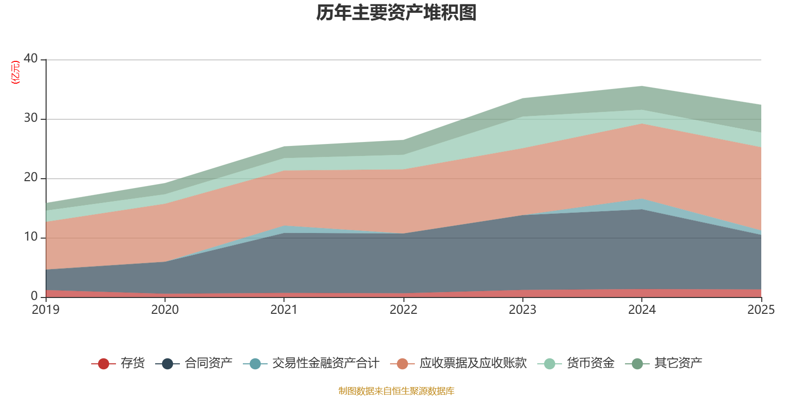 资产重大变化方面,截至2025年末,公司合同资产较上年末减少31.47%,占公司总资产比重下降9.36个百分点;应收票据及应收账款较上年末增加10.85%,占公司总资产比重上升7.71个百分点;交易性金融资产合计较上年末减少58.38%,占公司总资产比重下降2.76个百分点;递延所得税资产较上年末增加39.82%,占公司总资产比重上升1.21个百分点。
