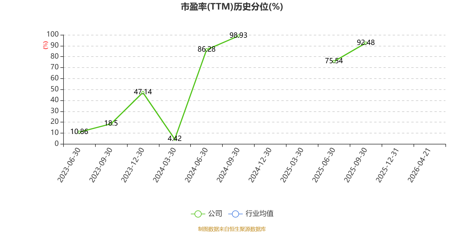 市盈率、市净率为负时,不显示当期分位数,会导致折线图中断。