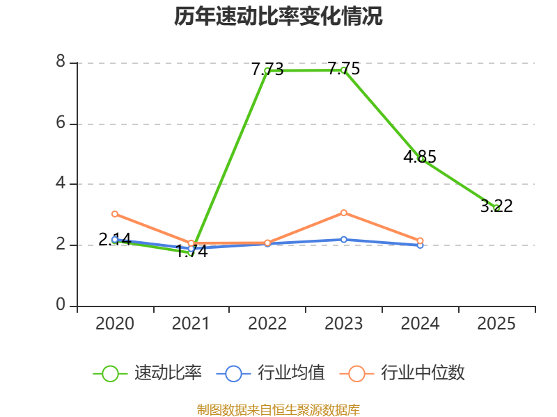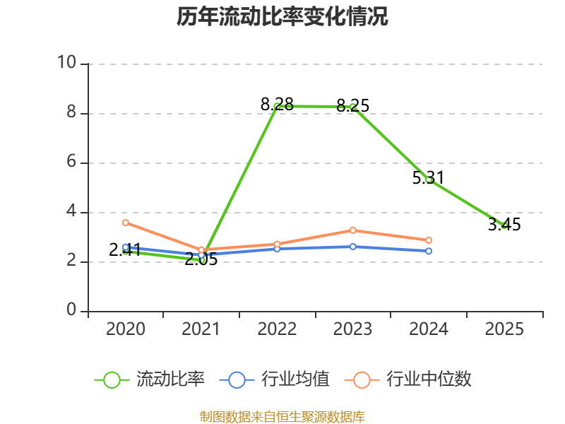 2025年,公司流动比率为3.45,速动比率为3.22。