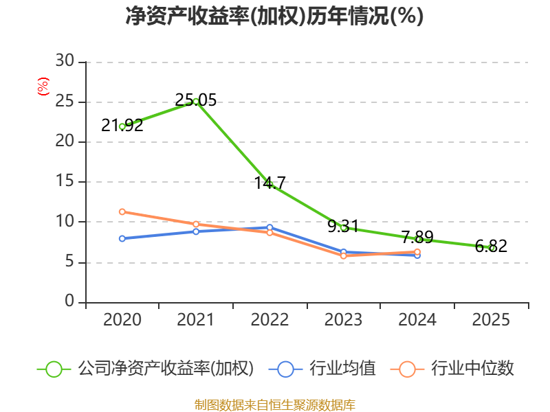 数据显示,2025年公司加权平均净资产收益率为6.82%,较上年同期下降1.07个百分点。公司2025年投入资本回报率为6.75%,较上年同期下降0.82个百分点。