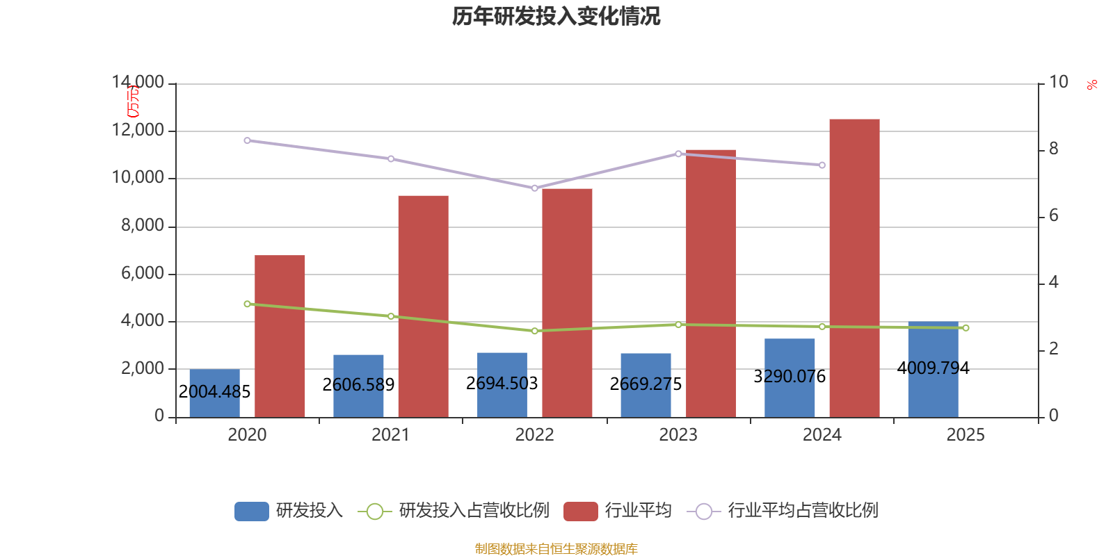 2025年全年,公司研发投入金额为4009.79万元,同比增长21.88%;研发投入占营业收入比例为2.67%,相比上年同期下降0.04个百分点。此外,公司全年研发投入资本化率为0%。