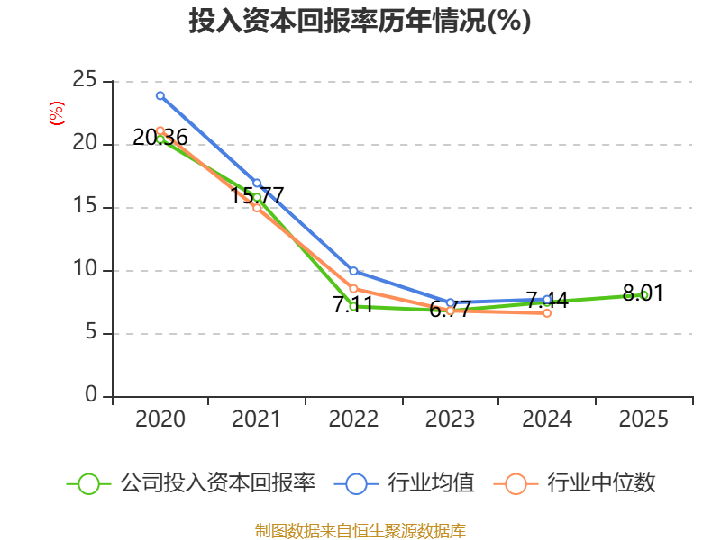 数据显示,2025年公司加权平均净资产收益率为10.98%,较上年同期上升1.01个百分点。公司2025年投入资本回报率为8.01%,较上年同期上升0.57个百分点。