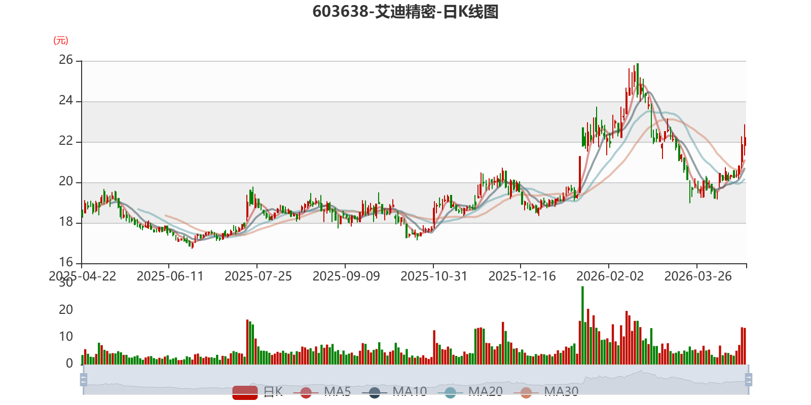 中证智能财讯艾迪精密(603638)4月22日披露2025年年度报告。2025年,公司实现营业总收入31.96亿元,同比增长17.29%;归母净利润3.94亿元,同比增长14.40%;扣非净利润3.67亿元,同比增长13.32%;经营活动产生的现金流量净额为5.14亿元,同比增长230.34%;报告期内,艾迪精密基本每股收益为0.47元,加权平均净资产收益率为10.98%。公司2025年度分配预案为:拟向全体股东每10股派现1元(含税)。