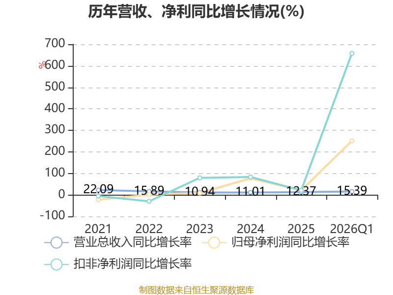 资产重大变化方面,截至2026年一季度末,公司交易性金融资产合计占公司总资产的12.93%,上年末为0;货币资金较上年末减少23.76%,占公司总资产比重下降5.51个百分点;应收票据及应收账款较上年末增加5.36%,占公司总资产比重下降2.14个百分点;固定资产较上年末增加7.96%,占公司总资产比重下降1.93个百分点。