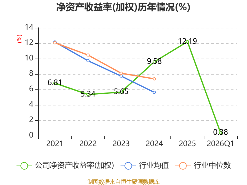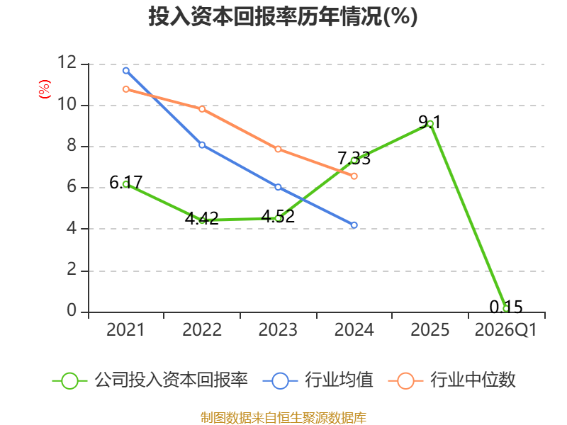 盈利能力方面, 2026年一季度公司加权平均净资产收益率为0.38%,同比上升0.24个百分点。公司2026年第一季度投入资本回报率为0.15%,较上年同期上升0.11个百分点。