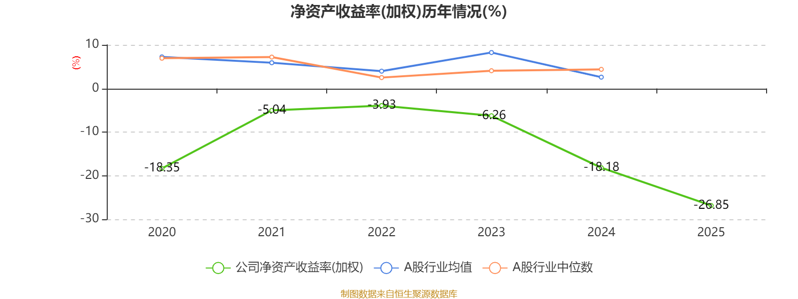 数据显示,2025年公司平均净资产收益率为-26.85%,较上年同期下降8.67个百分点。
