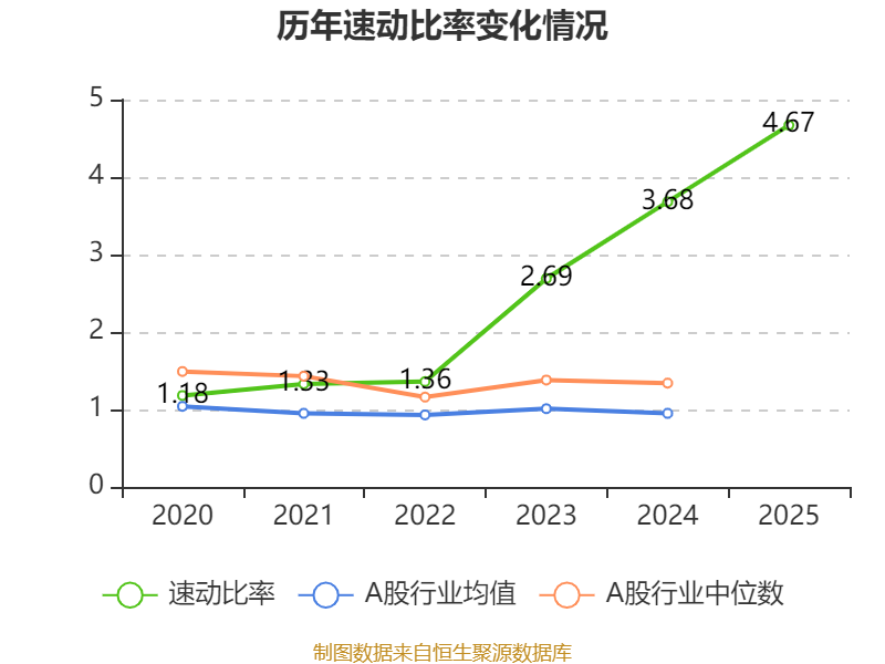2025年,公司流动比率为5.24,速动比率为4.67。