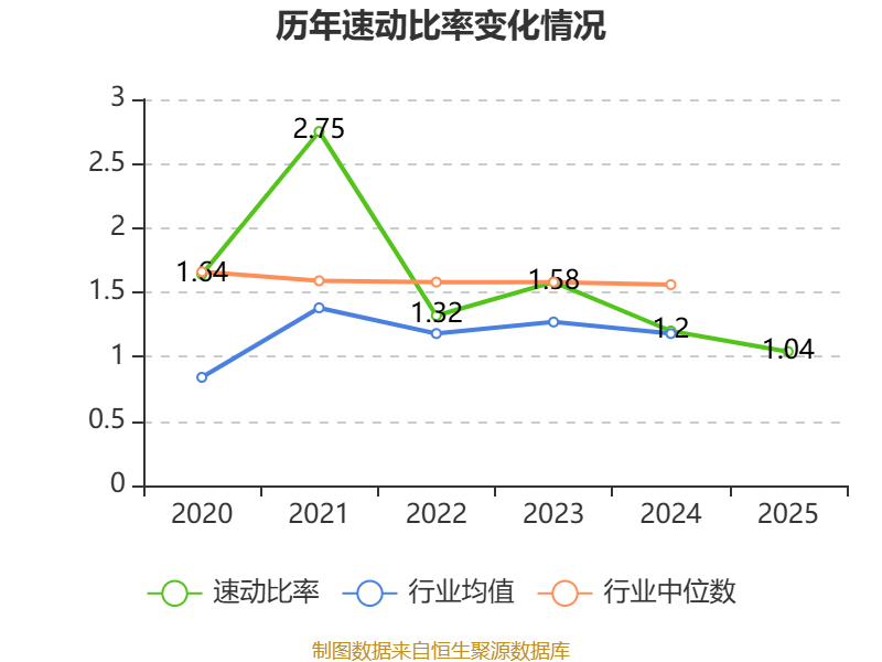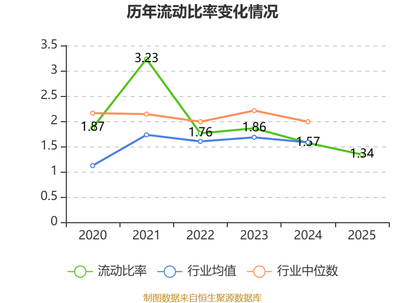 2025年,公司流动比率为1.34,速动比率为1.04。
