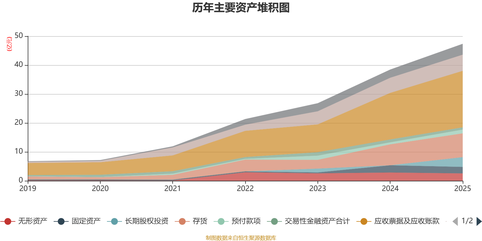 资产重大变化方面,截至2025年末,公司长期股权投资占公司总资产的7.15%,上年末为0;无形资产较上年末减少11.07%,占公司总资产比重下降2.05个百分点;货币资金较上年末增加6.9%,占公司总资产比重下降1.8个百分点;固定资产较上年末减少10.27%,占公司总资产比重下降1.77个百分点。