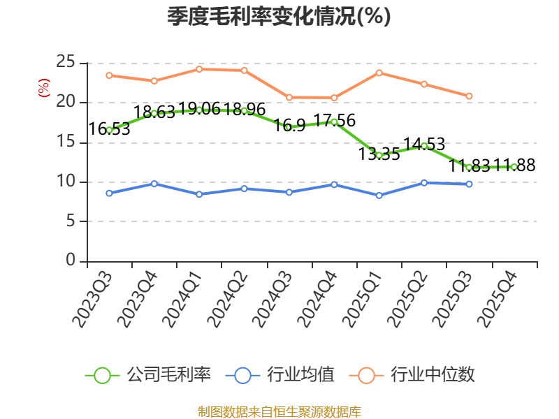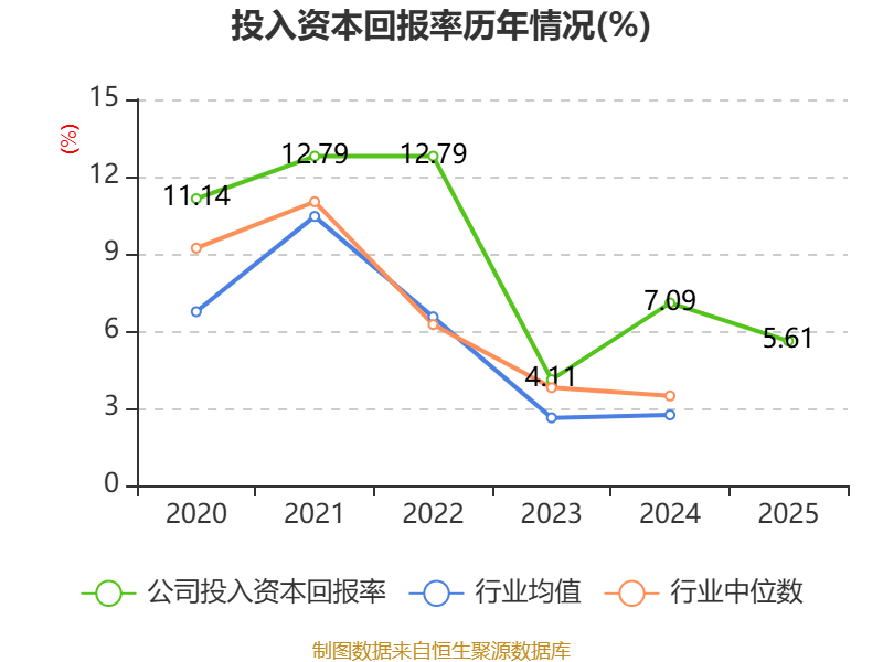 数据显示,2025年公司加权平均净资产收益率为9.51%,较上年同期下降1.37个百分点。公司2025年投入资本回报率为5.61%,较上年同期下降1.48个百分点。