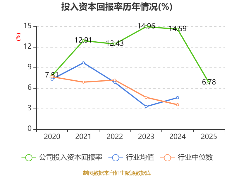 数据显示,2025年公司加权平均净资产收益率为7.88%,较上年同期下降8.64个百分点。公司2025年投入资本回报率为6.78%,较上年同期下降7.81个百分点。