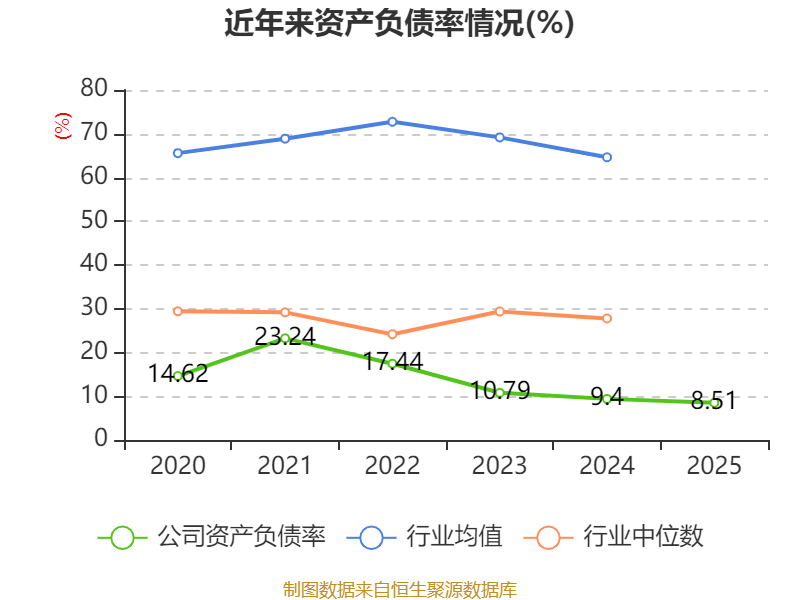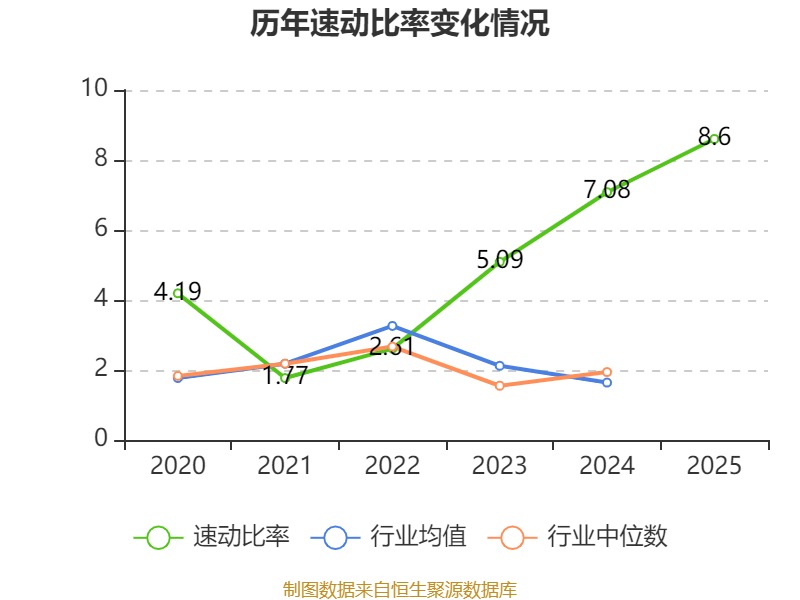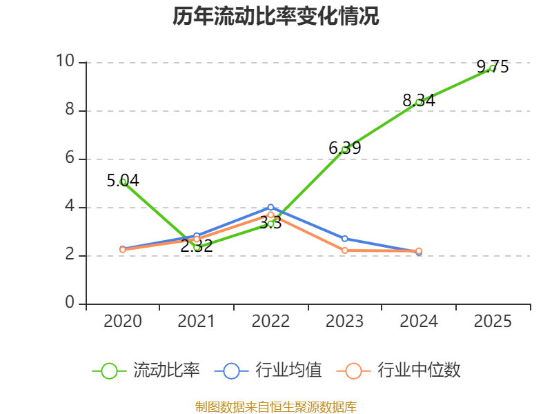2025年,公司流动比率为9.75,速动比率为8.6。