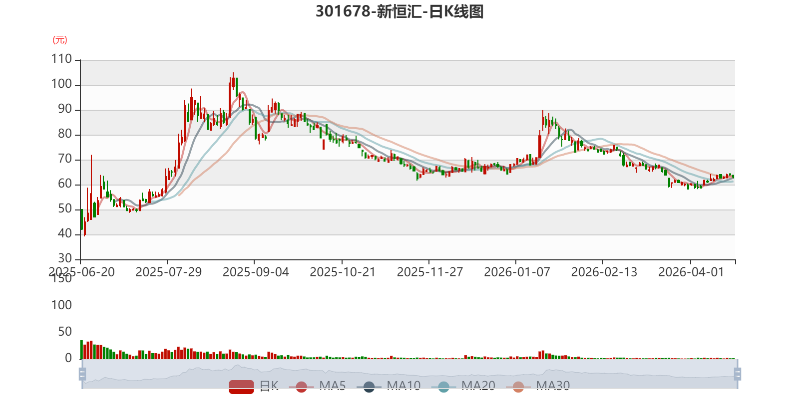 值得注意的是,中登公司数据显示,截至2026年4月17日,新恒汇10.58%股份处于质押状态。年报显示,第八大股东共青城志林堂投资合伙企业(有限合伙)质押679.59万股公司股份,占其全部持股的100%;股东淄博高新产业投资有限公司质押480万股公司股份,占其全部持股的90.57%。;第七大股东陈同胜质押450万股公司股份,占其全部持股的61.63%。