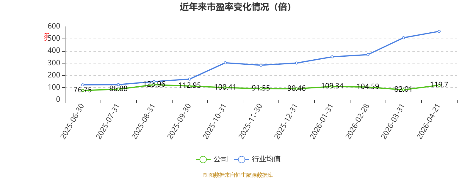 以4月21日收盘价计算,新恒汇目前市盈率(TTM)约为119.7倍,市净率(LF)约7.85倍,市销率(TTM)约16.35倍。