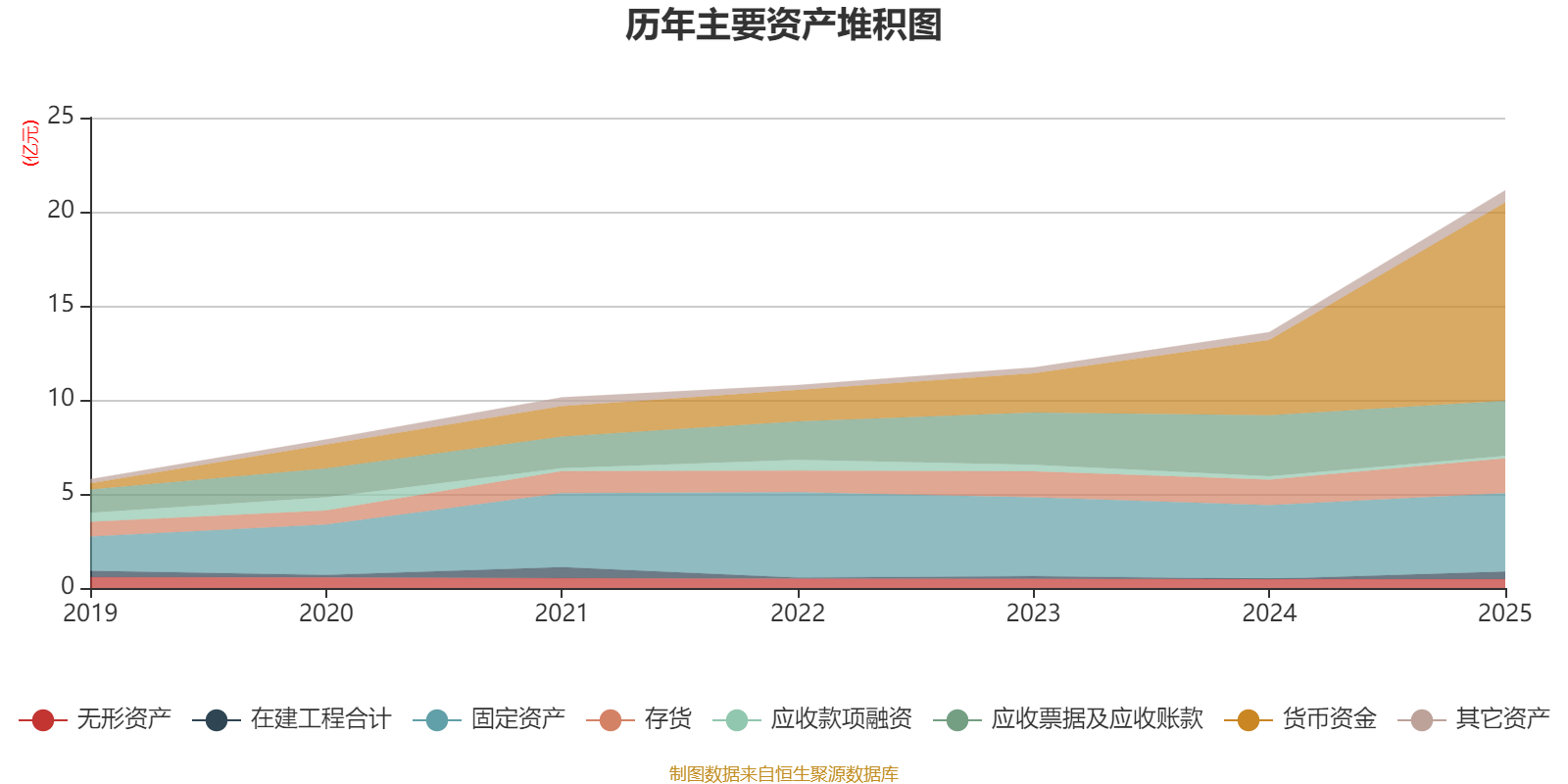 资产重大变化方面,截至2025年末,公司货币资金较上年末增加164.15%,占公司总资产比重上升20.54个百分点;应收票据及应收账款较上年末减少9.79%,占公司总资产比重下降10.01个百分点;固定资产较上年末增加6.31%,占公司总资产比重下降9.12个百分点;在建工程合计较上年末增加3850.65%,占公司总资产比重上升1.83个百分点。