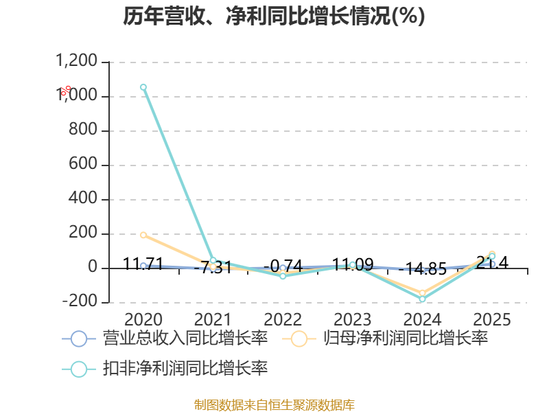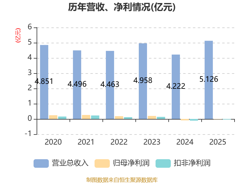 中证智能财讯汇源通信(000586)4月22日披露2025年年度报告。2025年,公司实现营业总收入5.13亿元,同比增长21.40%;归母净利润亏损185.9万元,上年同期亏损934.26万元;扣非净利润亏损367.79万元,上年同期亏损1124.92万元;经营活动产生的现金流量净额为3412.8万元,上年同期为-542.78万元;报告期内,汇源通信基本每股收益为-0.0096元,加权平均净资产收益率为-0.58%。