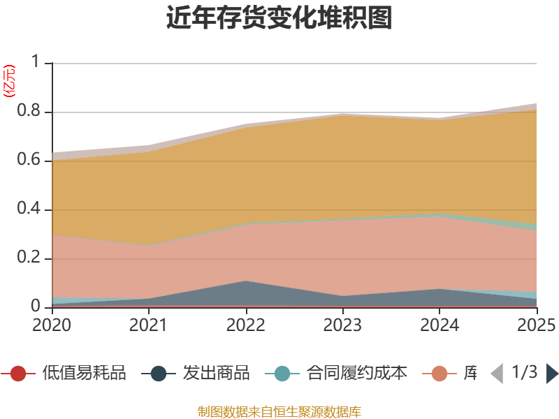 从存货变动来看,截至2025年末,公司存货账面价值为8345.12万元,占净资产的25.76%,较上年末增加597.57万元。其中,存货跌价准备为608.32万元,计提比例为6.79%。
