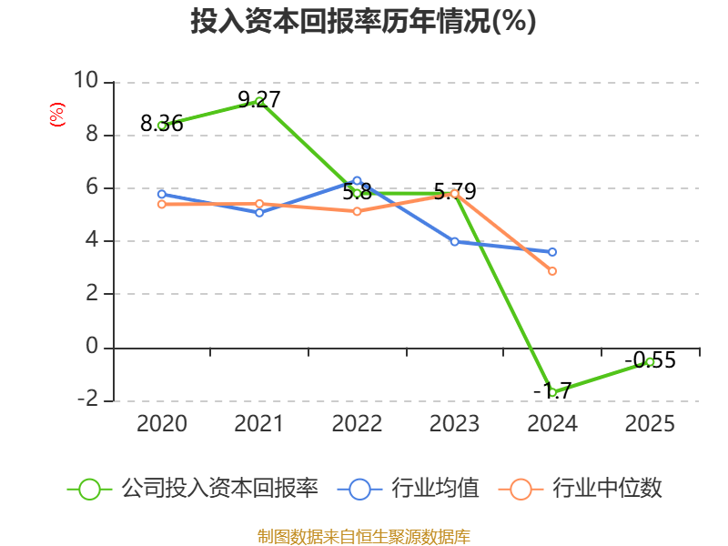 数据显示,2025年公司加权平均净资产收益率为-0.58%,较上年同期上升2.26个百分点。公司2025年投入资本回报率为-0.55%,较上年同期上升1.15个百分点。