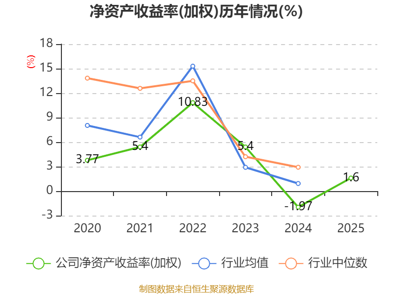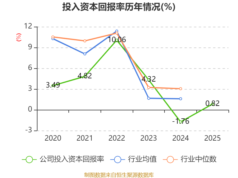 数据显示,2025年公司加权平均净资产收益率为1.6%,较上年同期上升3.57个百分点。公司2025年投入资本回报率为0.82%,较上年同期上升2.58个百分点。