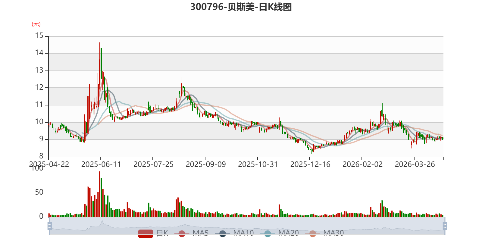值得注意的是,中登公司数据显示,截至2026年4月17日,贝斯美13.69%股份处于质押状态。年报显示,第一大股东宁波贝斯美投资控股有限公司质押4132.8万股公司股份,占其全部持股的49.72%;第五大股东钟军海质押541.5万股公司股份,占其全部持股的75%;第七大股东吴继铭质押270.98万股公司股份,占其全部持股的75%。