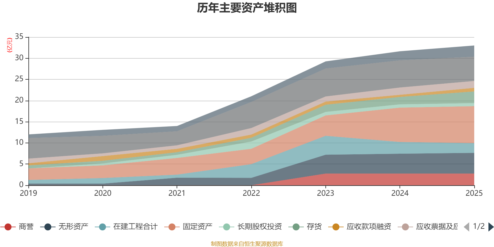 资产重大变化方面,截至2025年末,公司货币资金较上年末减少10.97%,占公司总资产比重下降2.98个百分点;存货较上年末增加56%,占公司总资产比重上升2.76个百分点;在建工程合计较上年末减少17.06%,占公司总资产比重下降1.8个百分点;其他非流动资产较上年末增加145.75%,占公司总资产比重上升1.14个百分点。