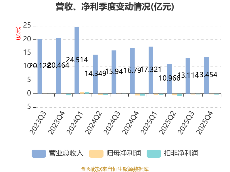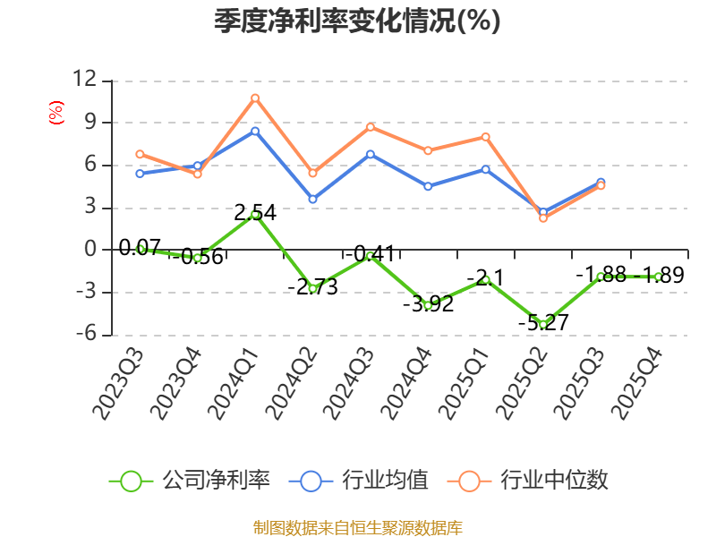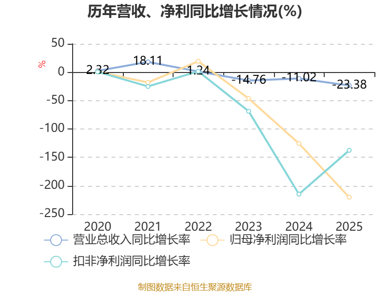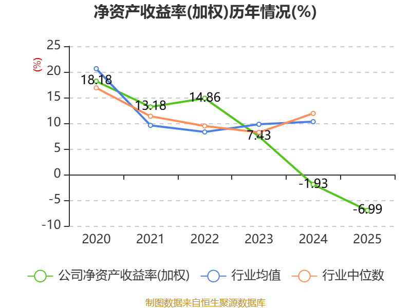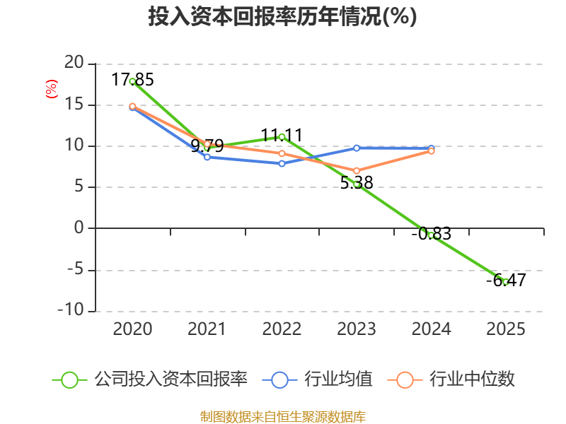数据显示,2025年公司加权平均净资产收益率为-6.99%,较上年同期下降5.06个百分点。公司2025年投入资本回报率为-6.47%,较上年同期下降5.64个百分点。