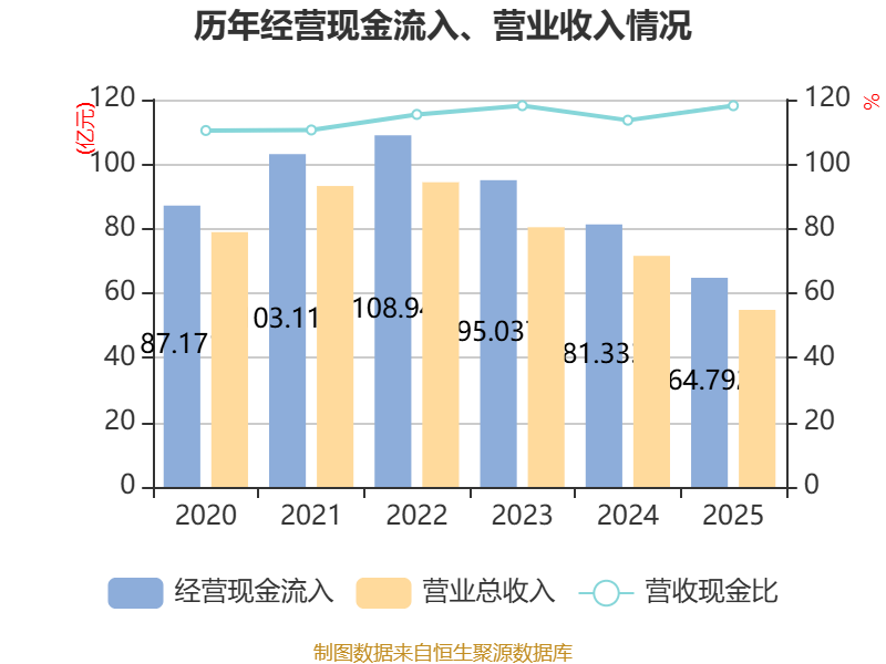 截至2025年,公司经营活动现金流净额为4.12亿元,同比增长7037.71%;筹资活动现金流净额-4.64亿元,同比减少679.67万元;投资活动现金流净额-5.3亿元,上年同期为-6.49亿元。