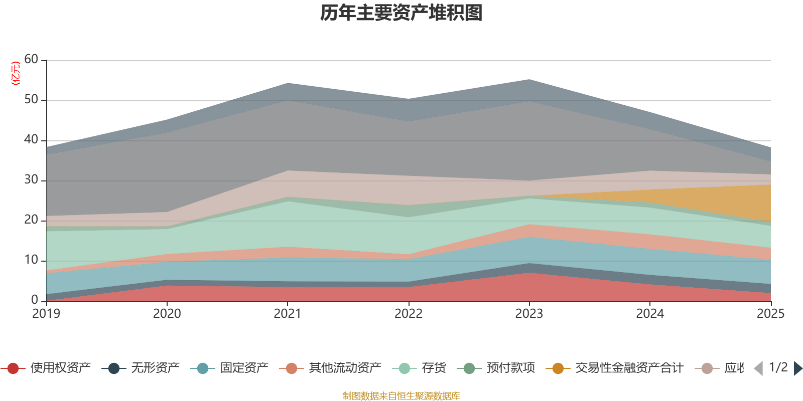 资产重大变化方面,截至2025年末,公司交易性金融资产合计较上年末增加188.19%,占公司总资产比重上升17.53个百分点;货币资金较上年末减少69.66%,占公司总资产比重下降13.75个百分点;使用权资产较上年末减少53.04%,占公司总资产比重下降3.65个百分点;应收票据及应收账款较上年末减少46.18%,占公司总资产比重下降3.38个百分点。
