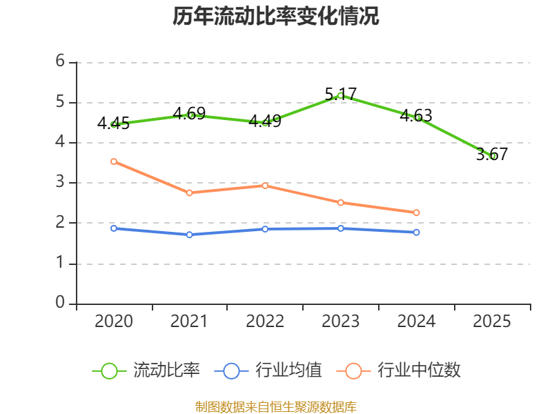 2025年,公司流动比率为3.67,速动比率为3.22。